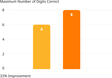 Michaela went from 6 digits that she successfully remembered to 8 – an increase of 33%.